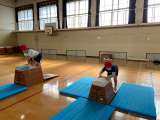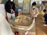 6年生が段ボールで作った「コリントゲーム」で、数を数えようの学習をしています。...