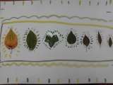 「赤・黄・青・黒・白」の絵の具だけを使って、お気に入りの葉の色を作りました。 「...