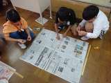 算数「面積」の学習では、1平方メートルの新聞紙を使っていろいろな場所の広さを調...