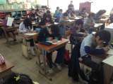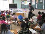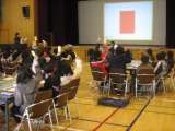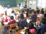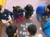 多目的室では1年生と3年生が百人一首をしていました。3年生は1年生に百人一首につ...