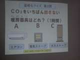 休憩後,「温暖化クイズ」に挑戦しました。 第1問「冬の旬の食べ物はどれ?」 食...