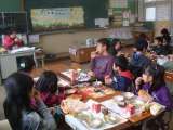 6年生を送る会のあと,給食はたてわりで食べます。いつもとは違う場所で,違うメン...