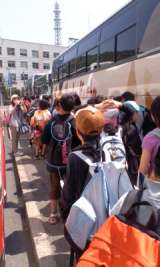 5月18日 とても天気のいい中,6年生は広島・岡山方面へ元気いっぱい,笑顔いっぱ...