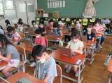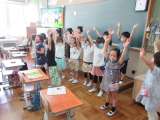 音楽の授業では「チェッチェッコリ」という曲に合わせて踊りました。もう何度か踊って...