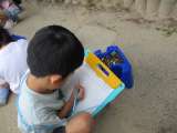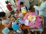 いろいろな箱をつかって、車や動物を作りました。 「タイヤは転がるから缶をつかっ...