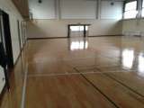 体育館の床がきれいになりました。ピカピカです。ラインもきれいに引き直してもらい...