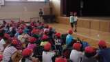 体育館の補修後はじめての朝会でした。 子どもたちも感嘆するほどきれいな体育館に...