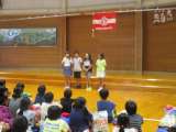 夕食が終わり,いよいよキャンプファイヤーです。 あいにくの天気のために,室内のプ...