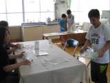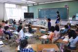 5年生は家庭科室でお茶を入れる学習をしているクラスと体育館でマット運動の学習をし...
