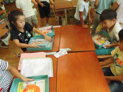 道徳の時間にカードを使ってゲームをしました。グループでカードを順に引いていき,そのカードに書かれていることをみんなでするというものです。カードには「つくえの中を整理しましょう。」「教室のごみを5つひろいましょう。」「トイレのスリッパをそろえましょう。」「本立ての本をそろえましょう。」などといった内容が書かれています。楽しそうに書かれた内容をこなしていく子どもたち。カードが全部なくなった時に教室やろうかを見てみると・・・ゲームをする前よりもきれいになっていました。きれいになった教室を見て,「なんだか気持ちいいな。」「教室が明るいな。」「気持ちがすっきりしたな。」といった感想が聞こえてきました。整理整頓の大切さに気付いた子どもたちでした。教室やろうかだけでなく,自分たちの気持ちまでもすっきりしたことに気付いたこどもたち。この時間の後,トイレのスリッパはびしっときれいにそろっていました。