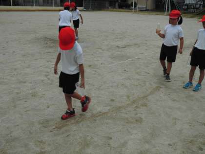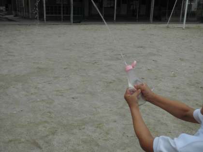 水遊びをしました。水を入れたペットボトル等の空き容器で絵を描いたり,川や池を作ったり,水のとばしっこをしたり,的当てをしたり・・・。遊びだすと,子どもたちからは次々と遊びのアイデアが出てきます。運動場をいっぱいに使い,楽しみました。