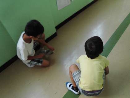 長期宿泊学習から帰ってきて,日常が戻ってきました。そして,ペア掃除も再開です。主に5年生がほうきをして,1年生が雑巾をしています。
