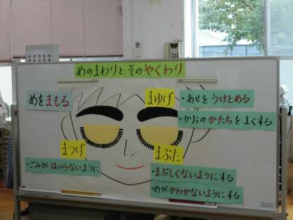 1年生では,視力検査の前に『目のまわりとそのやくわり』について考えます。