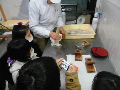 今日は,自分たちが調べた「九条弘道のまちのすてき」を伝えるために,お店に写真を撮らせてもらいに行ったり,自分たちのブースで使う道具を作ったりしました。