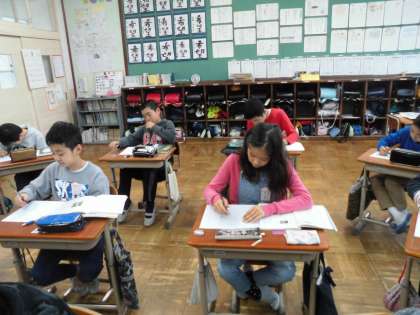 国語科「一まいの写真から」の学習で,物語を考えています。教科書にある7枚の写真から一枚を選び,想像力を働かせてお話を考えました。黙々と取り組む子どもたちは,小さな作家さんたちです。出来上がりが楽しみです。