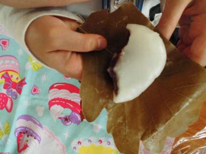 4月27日(金)の給食に「かしわ餅」がつきました。これは,端午の節句に食べる和菓子です。口に入れたとたん,「先生,おいしい。」,「かしわ餅,とってもおいしい」と口々に言いながら食べている1年生でした。