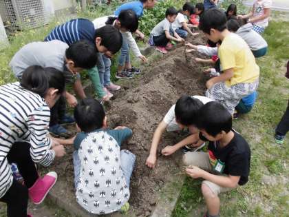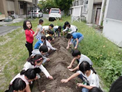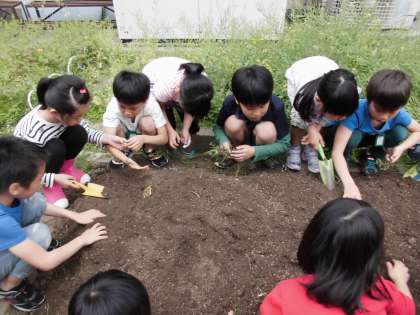 そこで,野菜を育てるための準備として,畑の草抜きをしたり,肥料を土にまぜたりしました。野菜の苗が届いたら,みんなで植える予定です。子どもたちは楽しみにしています。