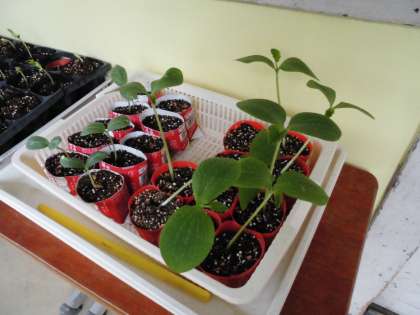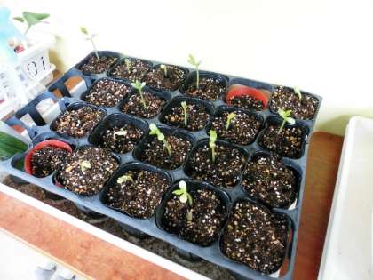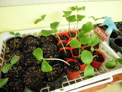 連休が明けて,いよいよ芽が出てきました。まきひげが出てきたころに,畑やプランターに植え替えをします。