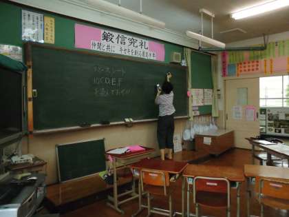 こちらは,「照度の検査」です。教室の黒板と児童机の明るさを検査します。明るすぎても暗すぎても,視力の低下や目の疲れに影響します。