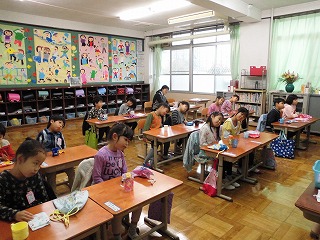 来週から始まる「フッ化物洗口」に向けて,今日は水を使ってうがいの練習をしました。