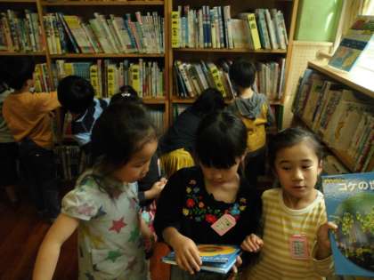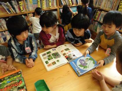 図書室でお花の本をさがしていると,「ヒマワリ」「アサガオ」の育て方が書かれた本がたくさん見つかりました。