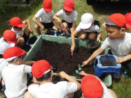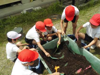 オクラの種をまきました。連休前に種の観察をしていたので,早く種まきをしたいと楽しみにしていました。どんなふうに育っていくのか楽しみですね。しっかり世話と観察をしていこう。