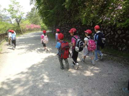 鹿もあわてる様子もなく,みんなのそばで草をむしゃむしゃ食べていました。
