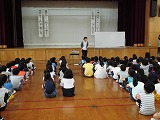 校長先生の話を,じっと座って話を聞いていました。