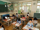 机を動かしたり,指示があるまで待ったりといったテストのときの約束や,名前を忘れずに書くこと,問題をしっかり読んで答えることなどを確認した後,緊張感をもって取り組みました。