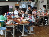 先週まで給食の時間は,全員が教室の前を向いて食べていたのですが,今週からは,友達と向かい合って楽しく食べることにチャレンジです。