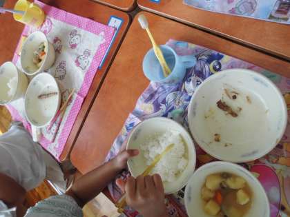 昨日から,近くの友達と机をくっつけて食べているのですが,友達のきれいな食べ方を見ていい刺激になったのか,きれいに食べる人が続出です。