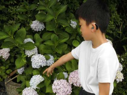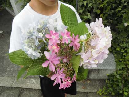 「あじさいの色,きれいだね。」