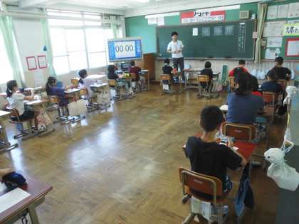 「書写」の時間は自分と対話する時間ということで,この机の並びで学習を進めています。