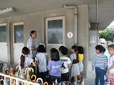 「一般ごみ」「プラごみ」「雑紙」の分別のルールや,捨てる場所について,確認しました。管理用務員の吉田先生に,やさしく教えていただきました。