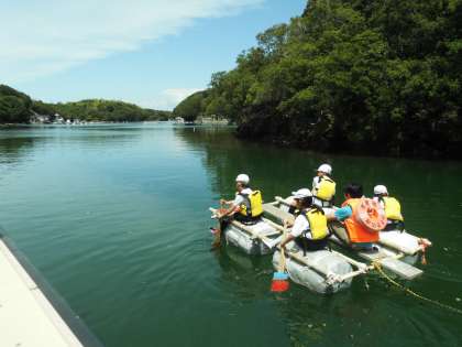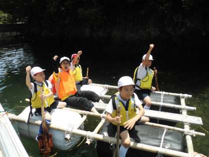 4年生 快晴のもとで いかだ遊び