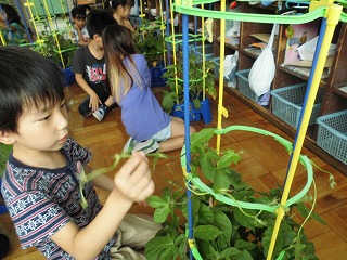 「伸びたつるを,しっかり支柱に巻きつけたらいい」