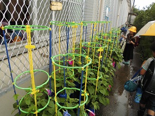 自分が育てているアサガオに花が咲くと,ほんとうにうれしいものですね。
