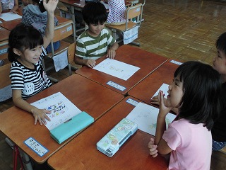 自分がもっている「たからもの」について,友達に言葉で説明する学習です。
