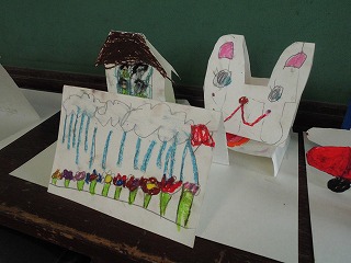 紙を「折って置くと立つ」という仕組みをもとに,いろいろな作品をつくりました。