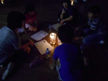 キャンドルを囲んで 今日一日のふり返りをしました