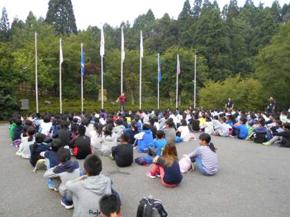 昨日の打合せで朝のつどいの場所は真ん中とわかっていました