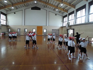 2年生と一緒に,団体演技の練習をしています。