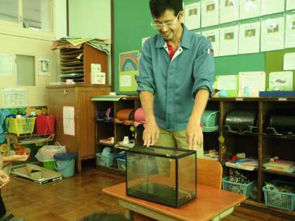 子ども達のお願いを聞いてくださり,1か月間ほど,3種類の生き物を教室で飼育するために預けてくださいました。