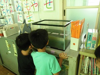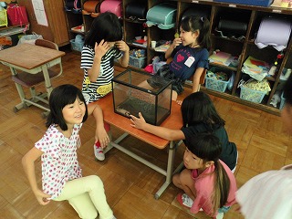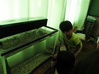 小さな金魚用のエサですが,ぱくっと食いつく様子に,子どもたちは大喜びでした。