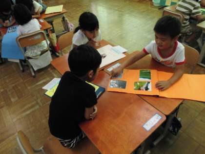 今日は作品を搬入する前に,自分の自由研究について,友達にお話しする時間をとりました。