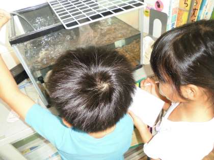 教室で飼っている生き物の「けんこうかんさつ」です。