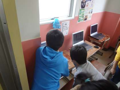 「パソコンで写真を選んで,九条弘道の魅力を伝えようよ。」
