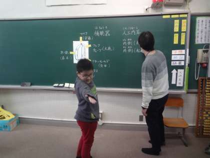 補聴器や人工内耳の絵を描いた後は…。