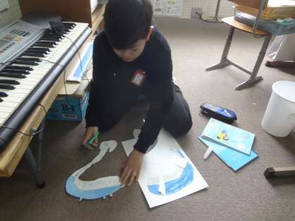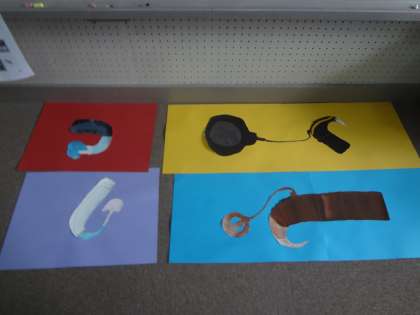 自分の補聴器や人工内耳を描いて紹介する準備をしています。