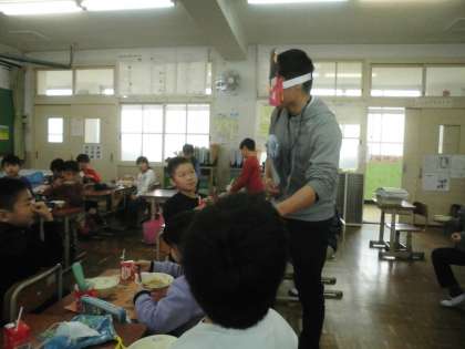 節分間近のある日の給食時間,教室にあるお客様が。ちょっぴり早い節分の鬼が来てくれました。「わー!鬼やー!」と大歓声があがりました。怖がるどころかとても嬉しそうな子どもたち。この鬼はその日の献立についていろいろ教えてくれました。3年生も献立の感想をたくさん話していました。